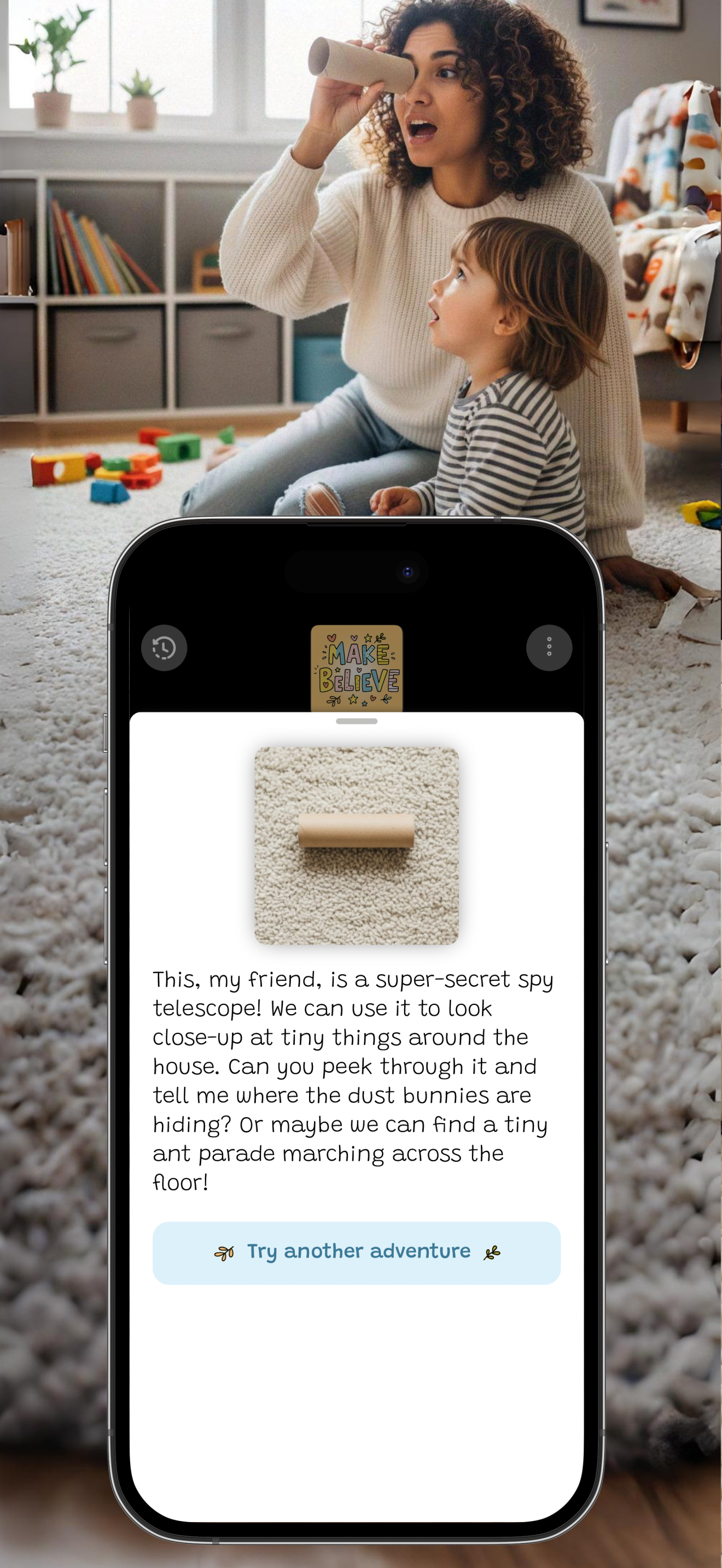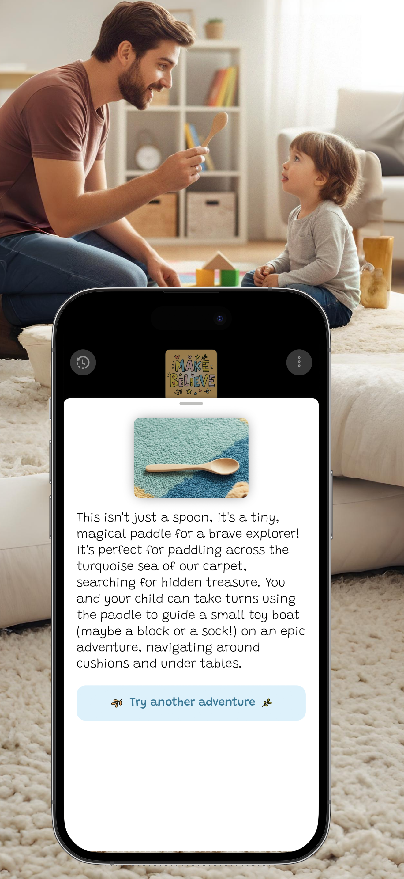 Rediscover the wonder of open-ended play with your children. Made by parents for parents, Make Believe turns any household item into the spark for imaginative storytelling and creative adventures.